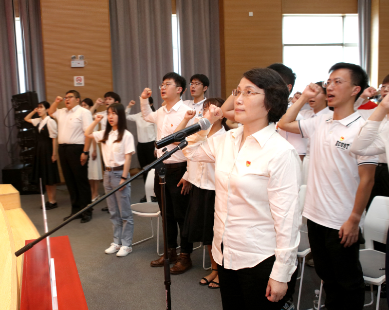 图片说明:校党委书记杜慧芳领誓 重温入党誓词